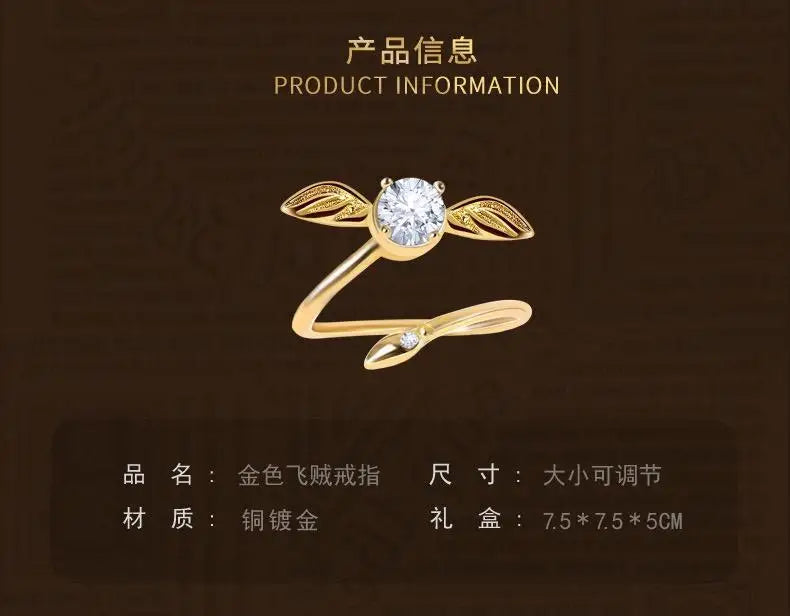 Gold-Plated Snitch Ring – Harries Cosplay Jewelry with Rotatable Wings