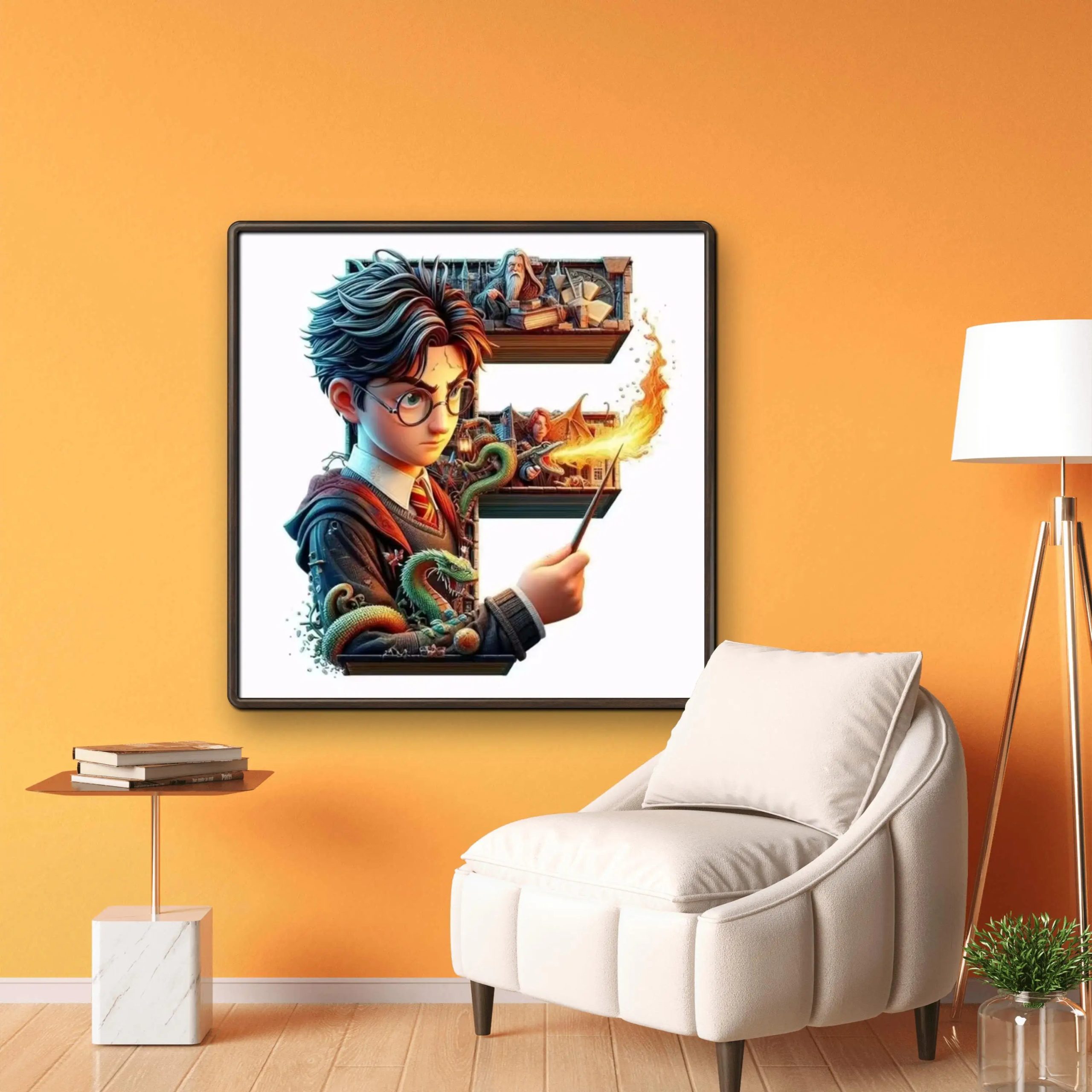Bring the magic to life with this Harry Potter-inspired 5D diamond painting featuring a fantasy castle, flying owl, and enchanted alphabet — a dazzling mosaic craft perfect for fans, DIY lovers, and home decoration.