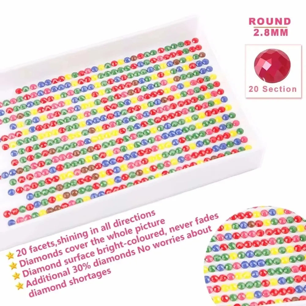 High-quality adhesive canvas and colorful resin rhinestones (square or round drills) for a sparkling finish.