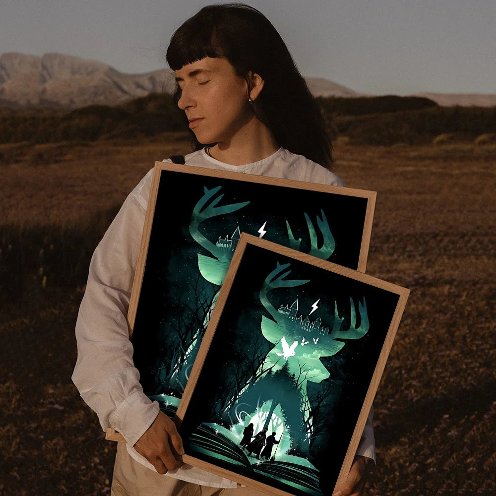 Movie-inspired design: Showcases landscapes, wand scenes, or character silhouettes from the Harry Potter universe